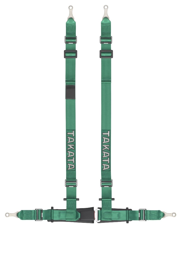 Takata Racing cult status for the street! Available in traditional TAKATA Green and also in Black! This belt manufactured in accordance to the European Standard ECE-R 16.04 and Federal Motor Vehicle Safety Standard (FMVSS) 209. It is a legal seat belt for use in street cars in all US states with mandatory seat belt laws. The belt features a center push button release buckle and our shoulder belt asmTM system to prevent submarining. 2" shoulder belts and 2" lap belts with Pull-up adjusters with comfort padding. The lap belt Snap-On attachments brackets are sewn into the lap belts. The shoulder belt attachment brackets can be removed allowing you to wrap the shoulder belts to a harnessbar or rollbar using the 3-bar adjusters provided. The Snap-On version is designed to be attached to eye bolts at the lap belts. (Drift belts should only be used with seats that have a "pass-through" for the shoulder harnesses such as a stock seat with an adjustable up and down headrest or a race type seat with openings for the shoulder belts. Never use this type of belt with a seat that has an integrated head rest that would require the shoulder belts to be routed around the outside of the headrest. The rear passenger seats must not be used while the Drift belt is installed.)